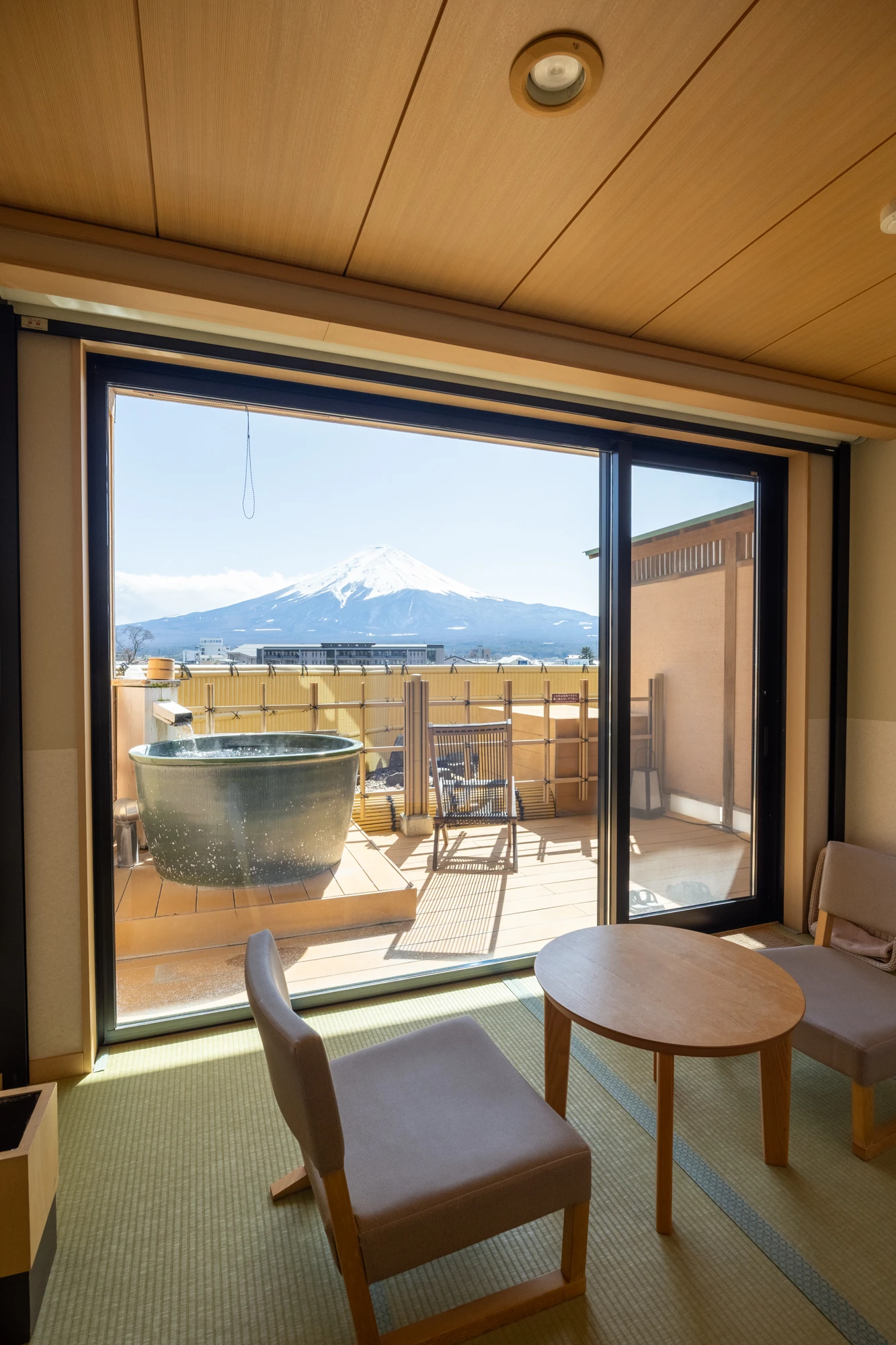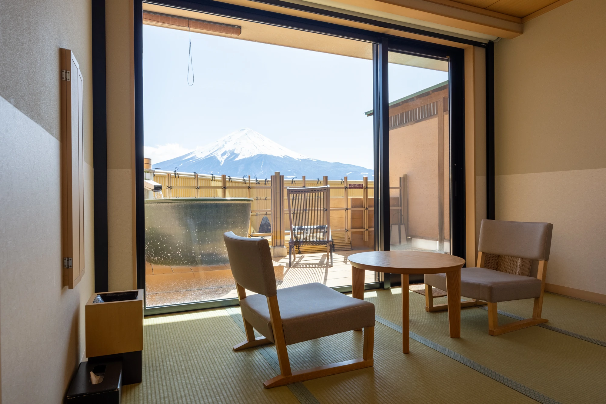 Enjoy the ever-changing beauty of Mt. Fuji through the seasons to the fullest from your open-air bath. The spacious 12-tatami Japanese-style room offers a premium experience for couples, families, and friends.