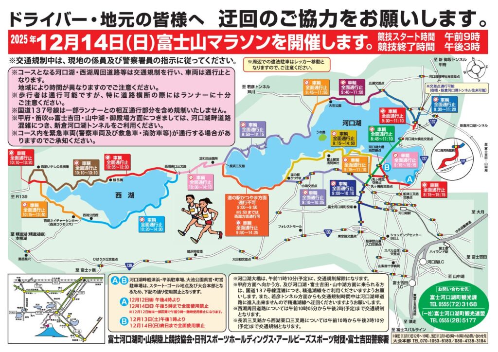 富士山マラソン当日は周辺道路で交通規制が実施されます。