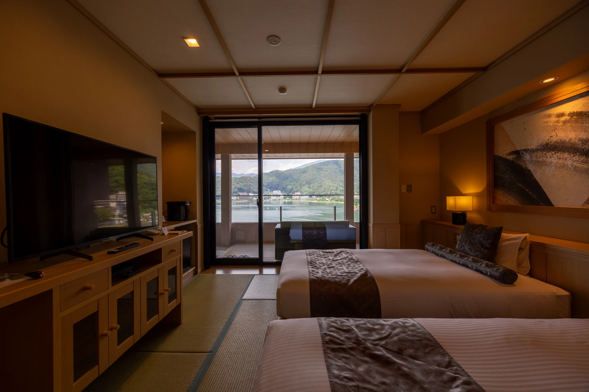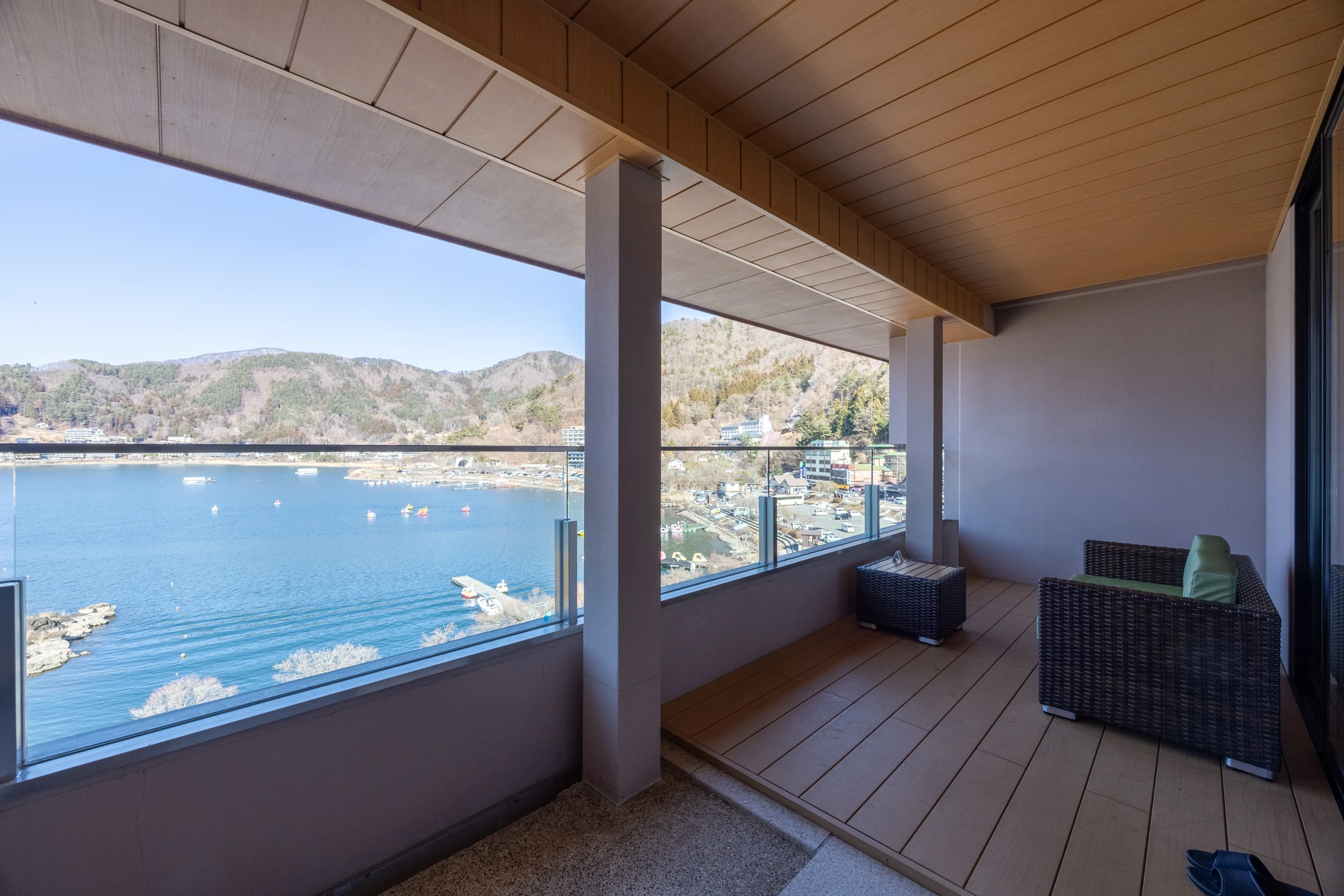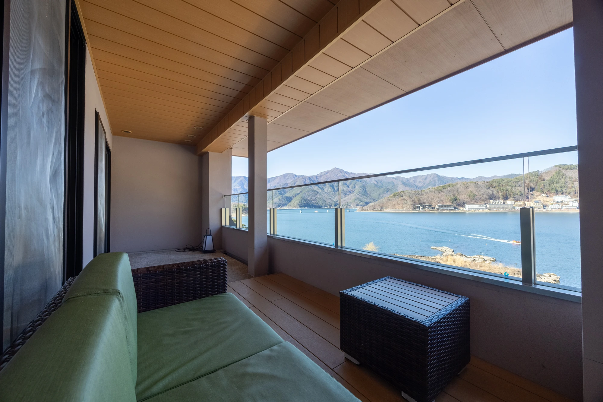 湖を見渡すテラスが心地いい新客室。 河口湖の休日を満喫してください。
